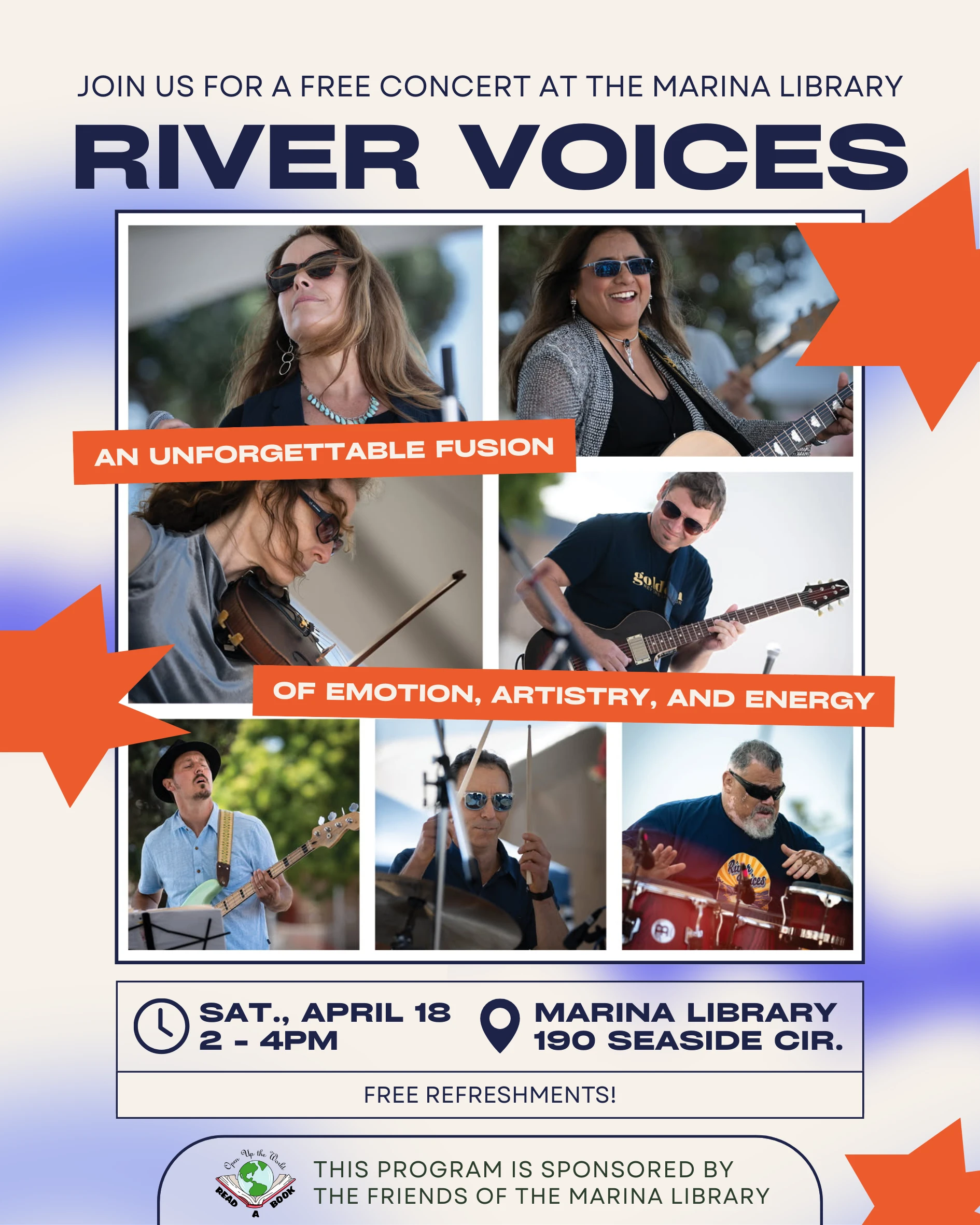 We organize concerts several times a year in front of the library. Before covid we hosted a concert every other month in the Marina Library community room. We stopped during the pandemic, of course, and now we are slowly resuming concerts.